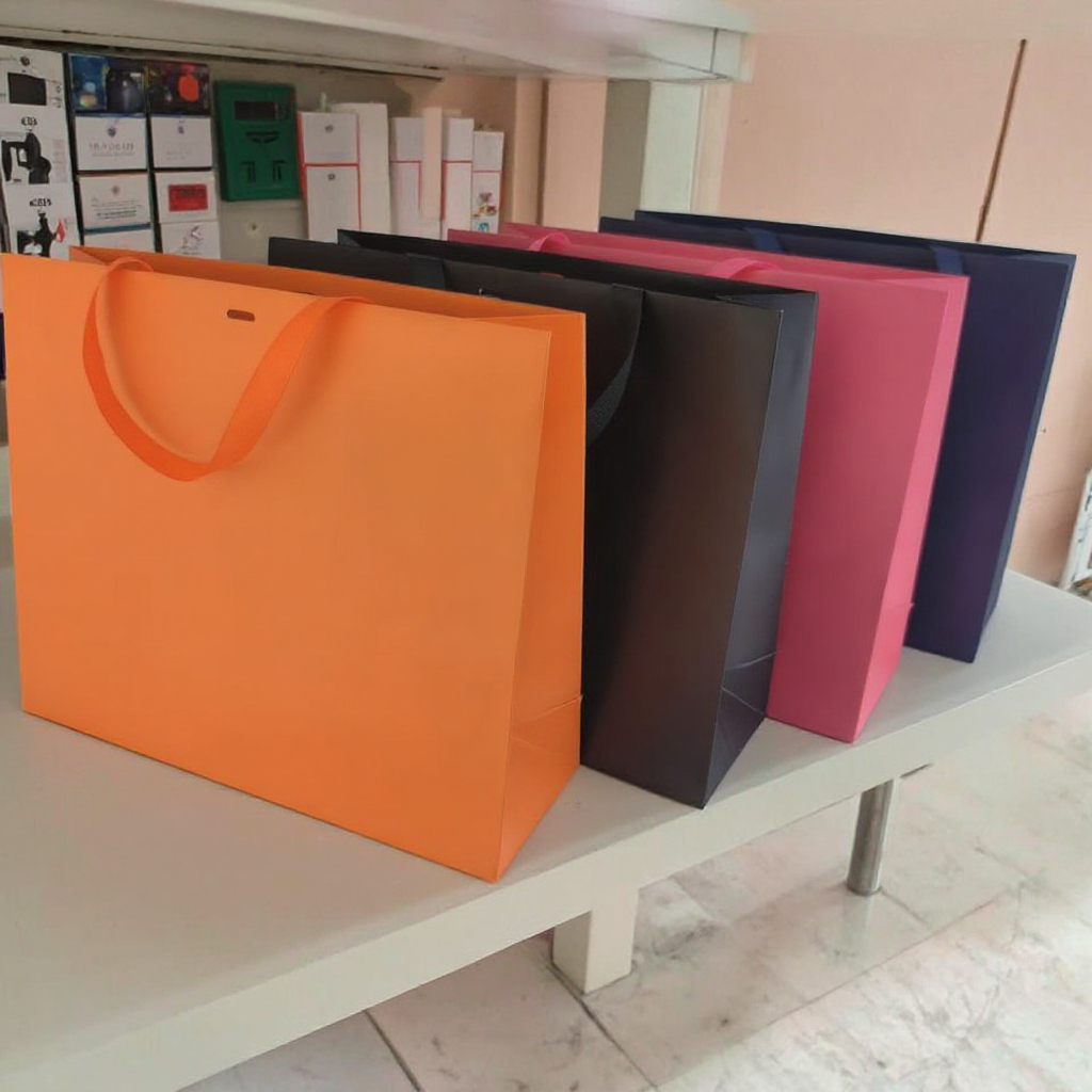 Bolsa de papel Kraft impresa personalizada Boutique con asas para comprar con su propio logotipo